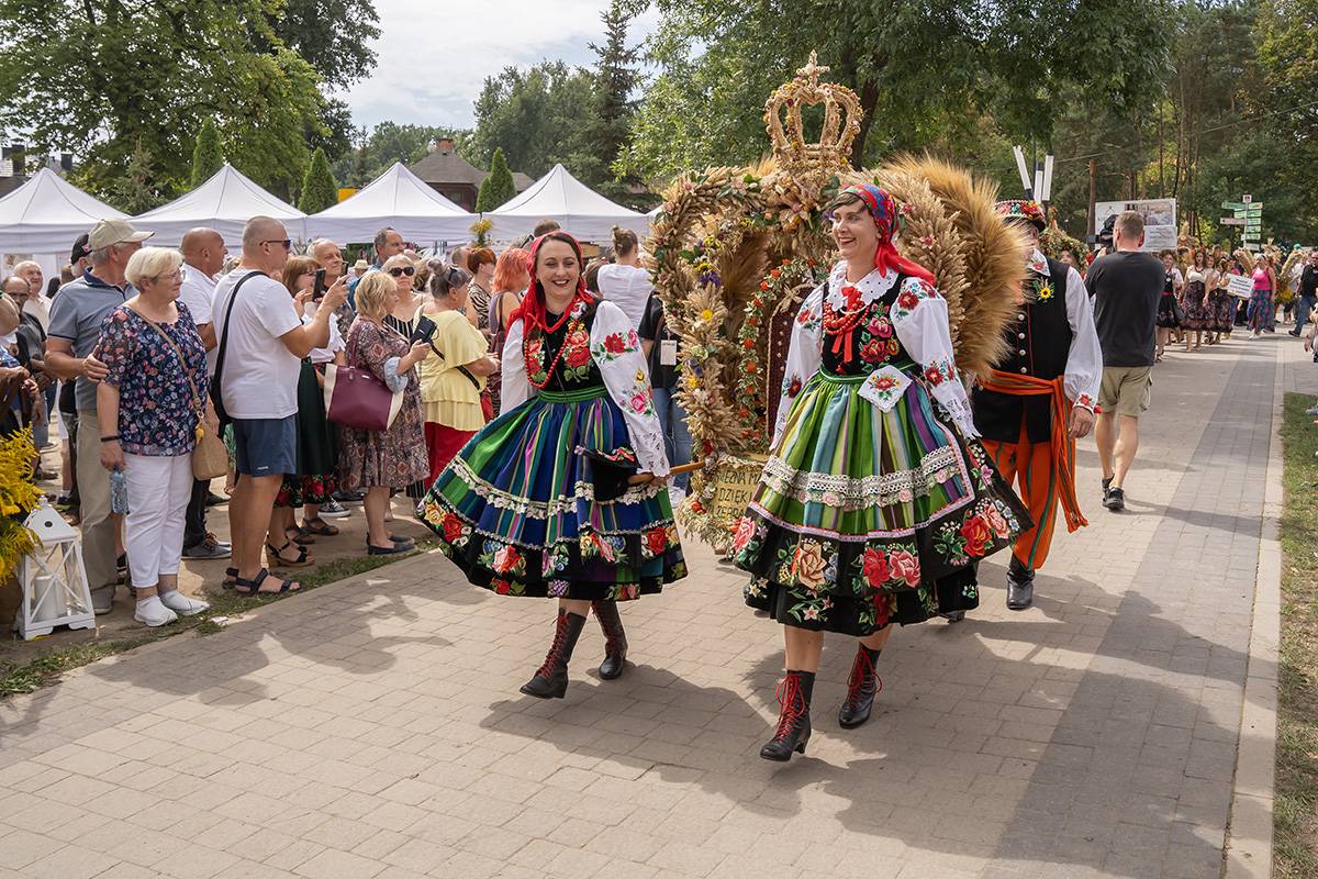 12:45 obrzędy dożynkowe i rozstrzygnięcie konkursów na "Najpiękniejszy wieniec dożynkowy" oraz kulinarnego "Doprawione Łódzkim smakiem"