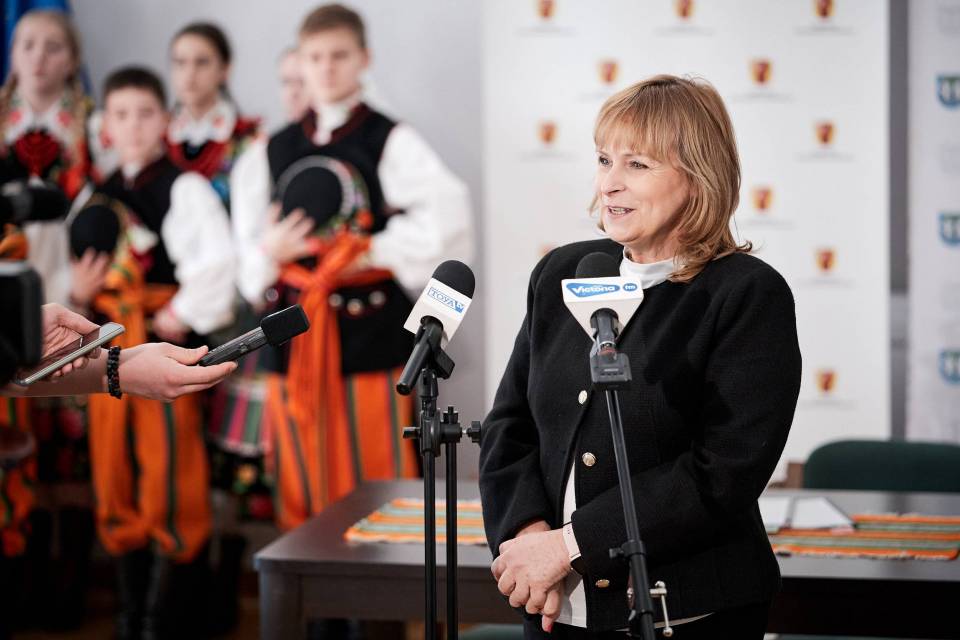- A folklor to jest opowieść o nas samych. I to od nas zależy, jak ją napiszemy. Trzymam mocno kciuki, abyście napisali piękną historię, którą z dumą będziemy przekazywać kolejnym pokoleniom - mówiła marszałek Joanna Skrzydlewska zwracając się m.in. do twórczyń ludowych i dzieci z zespołu ludowego Koderki, które towarzyszyły władzom Łowicza przy podpisaniu umowy na dofinansowanie Centrum Folkloru.